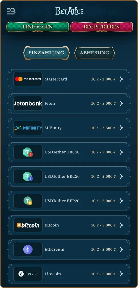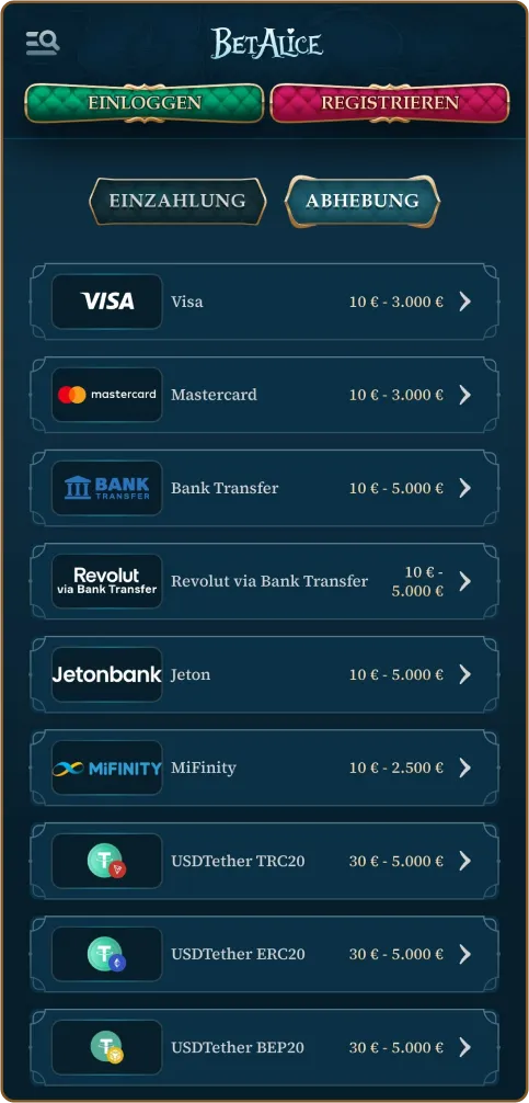 Unser Expertenteam zeigt Ihnen die einfachen Banking-Methoden bei BetAlice. Die Plattform bietet schnelle und transparente Prozesse für Ein- und Auszahlungen über verschiedene Zahlungsarten.